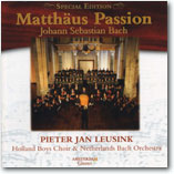 これらは、1989年と1987年の録音でしたが、2004年の「マタイ」の新録音が1990円で買えるというのが、このロイシンク盤です。この名前を聞いてピンと来た方もいらっしゃるかもしれませんが、この指揮者は例のBRILLIANT(今回のレーベルも、実体は同じもの)で、なんと2年間でバッハの教会カンタータ全曲を録音してしまったというものすごい人です。全曲がCD2枚に収録されていることから予想されるとおり、かなり早めのテンポを取っているすっきりした演奏ではあるのですが、なぜかもっさりした印象を持ってしまうのは、録音のせいでしょうか。そう、教会で録音されたということを考慮してみても、明らかに残響の多すぎるちょっと幼稚な録音のせいで、この「マタイ」は、本来の演奏の意図が少しゆがめられて伝わったかもしれない、残念な結果を生んでしまっています。その点が顕著に表れているのが、カンタータの時とは比べようもないほどの豊かな説得力を身につけた合唱。特にトレブルの自信に満ちた力強い歌い方、変に他のパートと融合しようとはしない独特の主張が、この甘ったるい録音のおかげで台無しになってしまっているのです。もし、もっとダイレクトな録音がなされていたならば、この合唱は特に後半のドラマティックな部分では、ハーモニーなどを超越した怒濤の説得力を、遺憾なく発揮していたことでしょう。