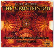 しかし、ご安心下さい。「受難曲」とは言っても、そんな暗いものばかりではないことが、このイギリス19世紀後半の作曲家、ジョン・ステイナーの「主を十字架に」という曲を聴くことによって分かるのですから。これは、逆に「こんなに明るくていいの?」と心配になるほどの、屈託のない音楽です。編成はテノールとバスの2人のソリストと混声合唱、そしてオルガンという簡素なものです。ソリスト達は例によって物語の進行を担いますが、テノール=エヴァンゲリスト、バス=イエスといったきっちりした役割ではなく、適宜配役が変わるのが面白いところでしょうか。スパロウ・シンプソンという人が、聖書からテキストを選択すると同時に、聖歌の歌詞を作っています。
