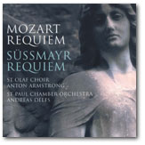 そんなジュスマイヤーの、「自作」のレクイエムというものが、あったそうなのです。この録音のプロデューサーであるマルコム・ブルーノという人が「発見」したものだそうで、もちろん、これが初めての録音になります。ただ、なぜか、実際の演奏にあたってはこのプロデューサーによって「Sequenz」が2つに分けられて、その間に「Offertorium」が挟みこまれ、さらにそれぞれの楽章で大幅なカットが行われています。なぜ、そのような措置を執ったのかは、この曲の作られ方を見ればある程度納得は出来るでしょう。まず特徴的なのは、テキストがラテン語ではなく、それをドイツ語に訳したもの、しかもかなり自由に韻を踏んだ「歌」の形に直されているということです(「Dies irae」が「Am Tags des Zorns」なんてなっているのは、ちょっと馴染めませんね)。そして、どの楽章も有節歌曲、つまり「1番」、「2番」といった同じ形の短い「歌」の繰り返しになっているのです。そうなってくると、「Sequenz」では同じメロディーの「歌」を8回も繰り返し聴かなければならないことになり、それではあまりに冗漫だということで、ブルーノはそれを半分カットし、前後に分けるということで、演奏会での鑑賞に堪えるものにしたというのです。そんなわけですから、この曲全体でも、聴けるのは小さな「歌」の繰り返し、いわゆる「レクイエム」から想像される、多くの場面を持つ起伏の大きい音楽といった側面は全く期待できません。