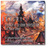 例によって、中心となるのは「Litany」と呼ばれる司祭と合唱の掛け合いです。その司祭、いわばソリストを、ここでは指揮者のブブノーが努めています。というより、ボクシャイ自身がそうであったように、「司祭」と「(合唱の)指揮者」というのは同じ人が努めるのが、一つの習慣だったのでしょう。そのブブノーのソロ、もちろんベル・カントというわけにはいきませんが、かなり垢抜けたものであったのは、この手の曲ではラフマニノフのものしか知らないものとしては、ちょっと意外な驚きでした。それは、おそらく曲の作られ方にも関係しているのでしょう。いわゆるビザンチンの典礼音楽といったものよりは、ごく普通のヨーロッパの中心で綿々と続いている「古典音楽」のテイストが、この曲には非常に色濃く反映されているのです。ちょうど真ん中辺で聴かれる「The Creed」などが、そんな軽やかな「合唱曲」の典型的なものでしょう。