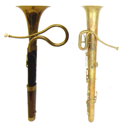 実は、ヴェルディが初期の作品で「チンバッソ」と指定したのは、下の写真の「バスホルン」という楽器だったのですね。それが、中期頃には「バスホルン」に代わって「オフィクレイド」を使うようになります。さらに、晩年の作品で、やっとこの「バストロンボーン」を使うようになったのです。ヴェルディが楽器としての「チンバッソ」を使わなくなっても、その同じパートに使われた楽器が、「チンバッソ」と呼ばれるようになったということですね。この名前は、いわば「一般名詞」としての使い方が本当は正しいのでしょう。ですから、楽譜にもともと「チンバッソ」という指定のある「ナブッコ」や「シチリア島」で、「バスホルン」ではなく「バストロンボーン」を使うのは、本当はまちがいです。