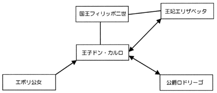 今回のアイテム「ドン・カルロ」では、さまざまな愛の形が繰り広げられます。それを「相関図」にしてみました。