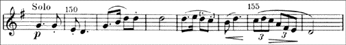 さらにもう1点、分かりやすいところは、フルートソロで出てきてヴァイオリンに受け継がれる第2主題の後半のリズムです。