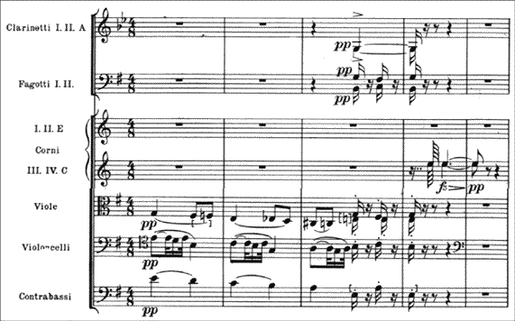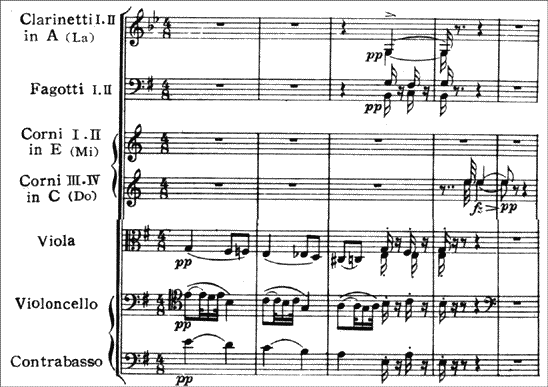 ホルンの入りは3拍目のアウフタクト、三十二分音符。