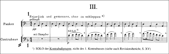 有名なコントラバスのソロですが、「新校訂版」には"Solo"の部分に次のような注釈が加えられています。