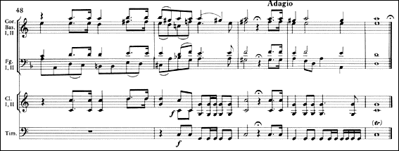 バイヤー版では、「ジャン、ジャン、ブァー」という、木管とTbによる印象的な合いの手がなくなっています。ちなみに、以後発表されるすべての版で、この位置の音符は消えています。