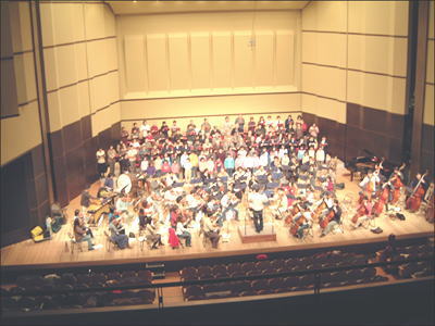 前日のリハーサルの模様です。幾分ステージが広く感じられるのは、合唱団の人数が去年より少ないせいなのでしょうか。 |